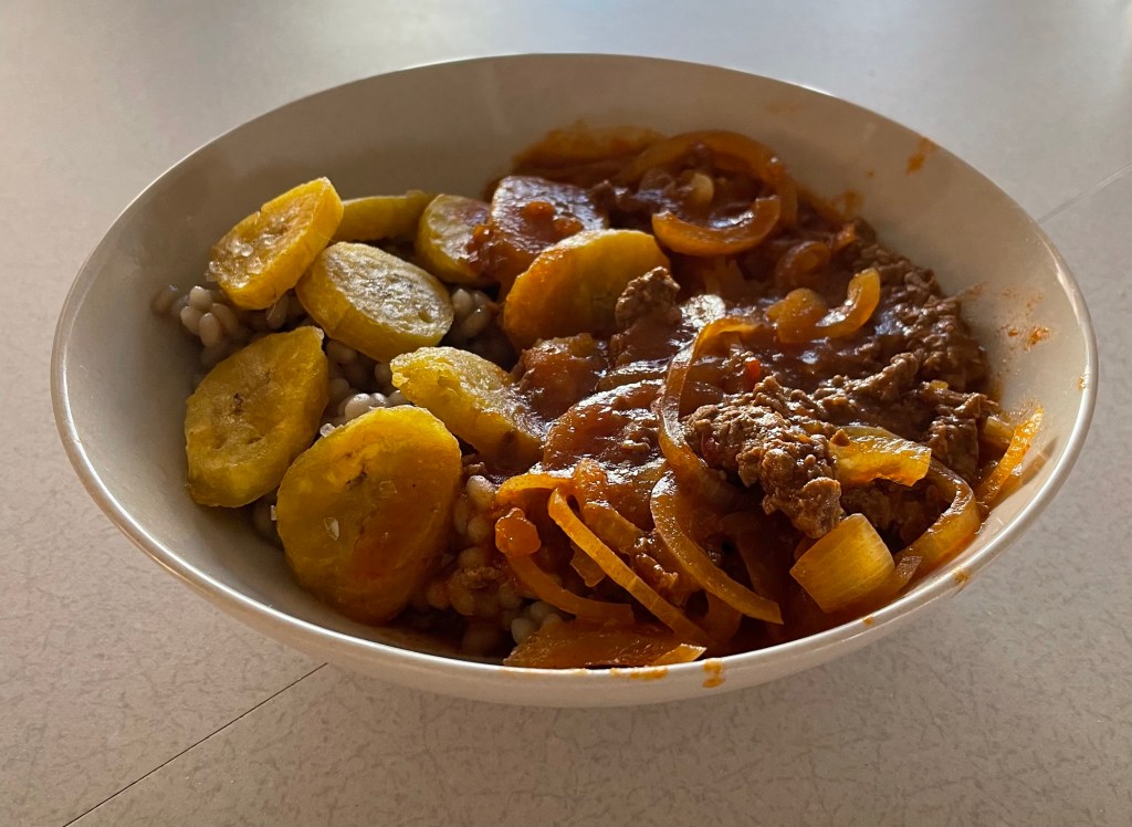 - Serve with white rice and fried plantains.