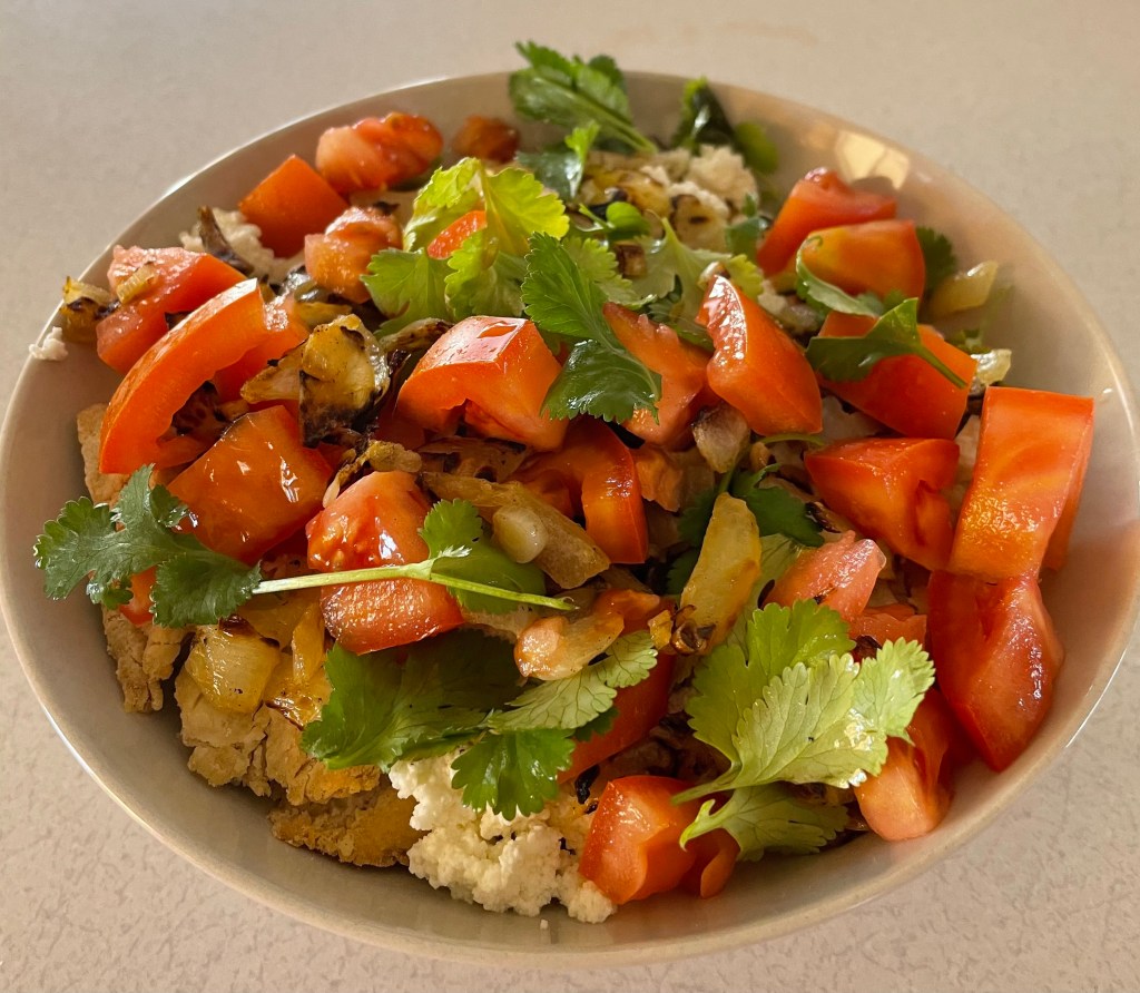 - Top with spring onions, tomatoes and cilantro.