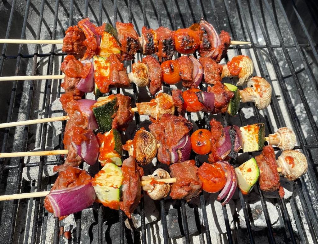 - Spicy brochettes right off the grill. Eat them when they are hot to fully enjoy them!!