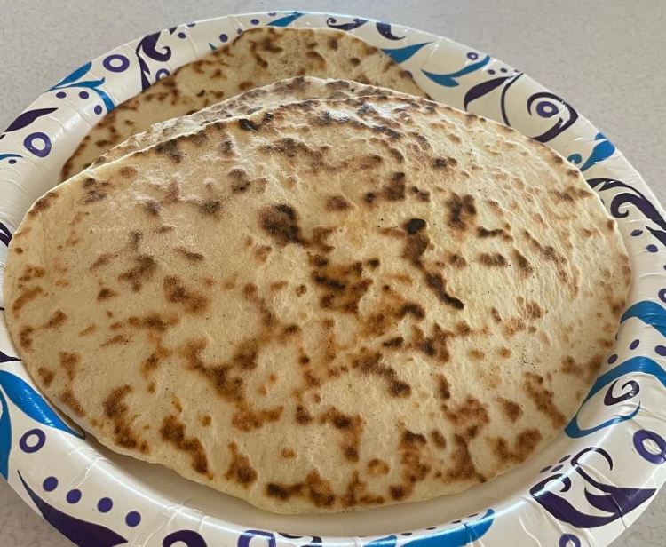 - Once all the dough is cooked, you can then put the kabob inside, garnish it with onions, or whatever you like, roll it up and enjoy!!