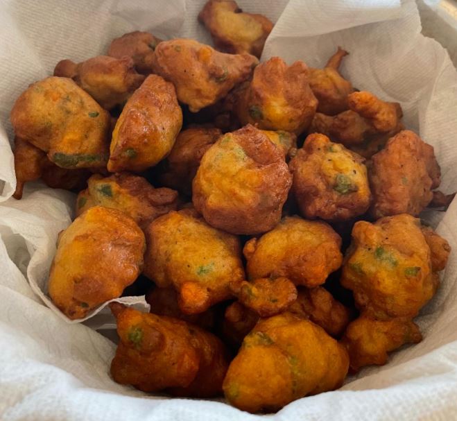 - Drop batter by tablespoons and fry until golden brown.