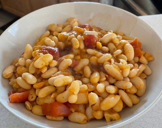 - Pour the sauce onto the beans, add 1 cup of water and simmer for 20 mins or until sauce thickens.