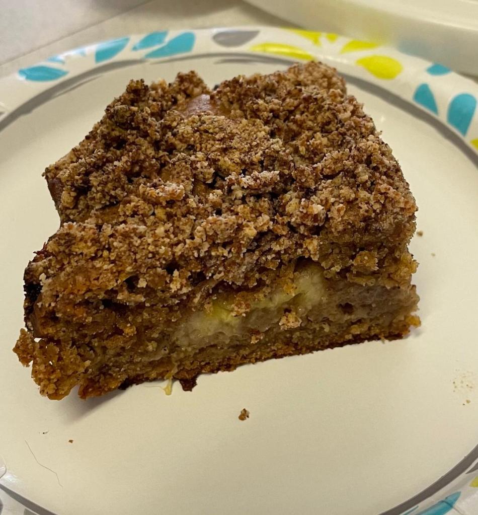 - Mix Crumb topping ingredients in bowl until well combined and sprinkle on top of cake.