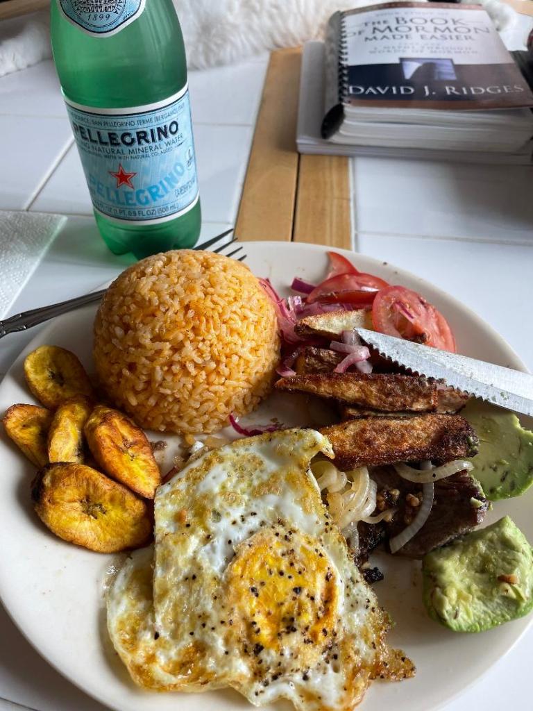 - Serve the steaks with a crispy fried egg or two on top with the additional side dishes of rice, homemade fries, fried ripe plantains, tomato, and onion curtido or your choice of salad, plus avocado slices and aji criollo. You can mix and match the sides according to your preference.