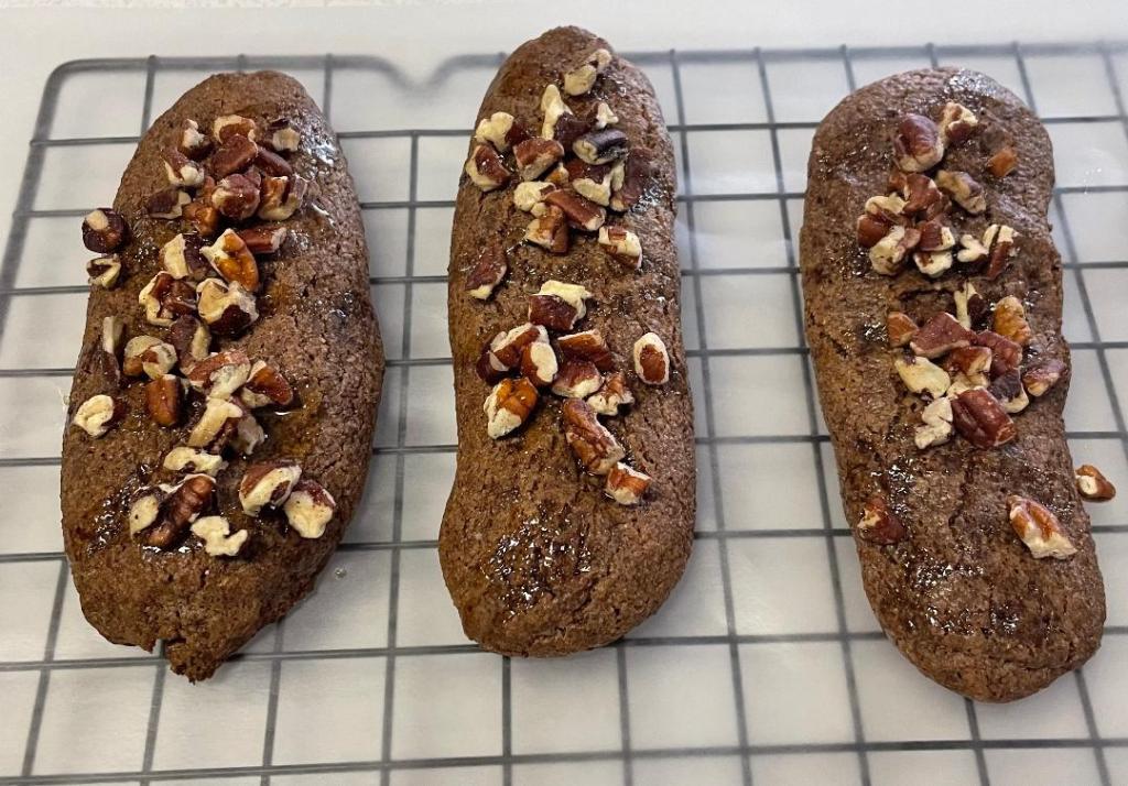 - Shape the biscuits into logs of the size 10cm long, 4cm wide, and 2cm thick. Place on a tray with baking paper.