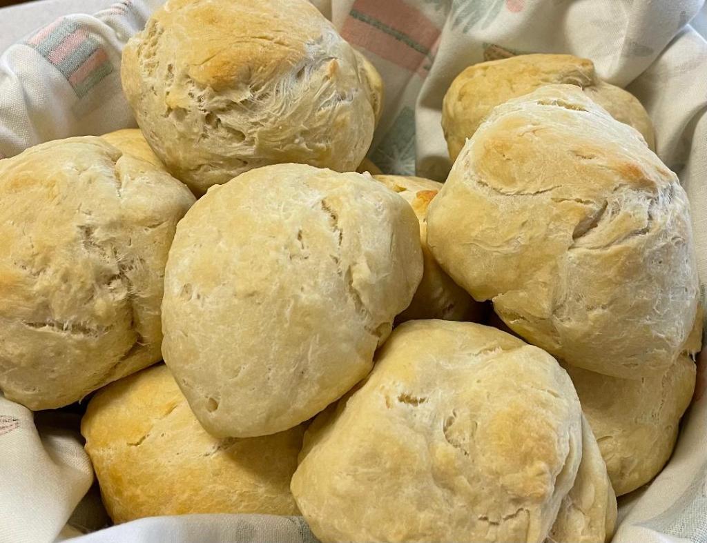 - Once dough has risen, take it out of the bowl and into a working surface, I prefer wood. Knead the dough for few minutes. Then roll it into a tube shape and cut it in fist size rolls, about 12 -13 rolls.