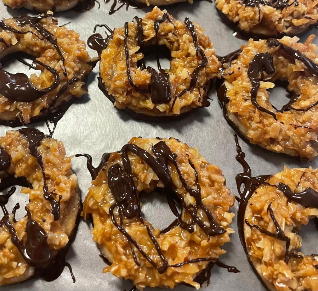 SAMOA COOKIES (https://www.justataste.com/homemade-samoas-girl-scout-cookies-recipe/):