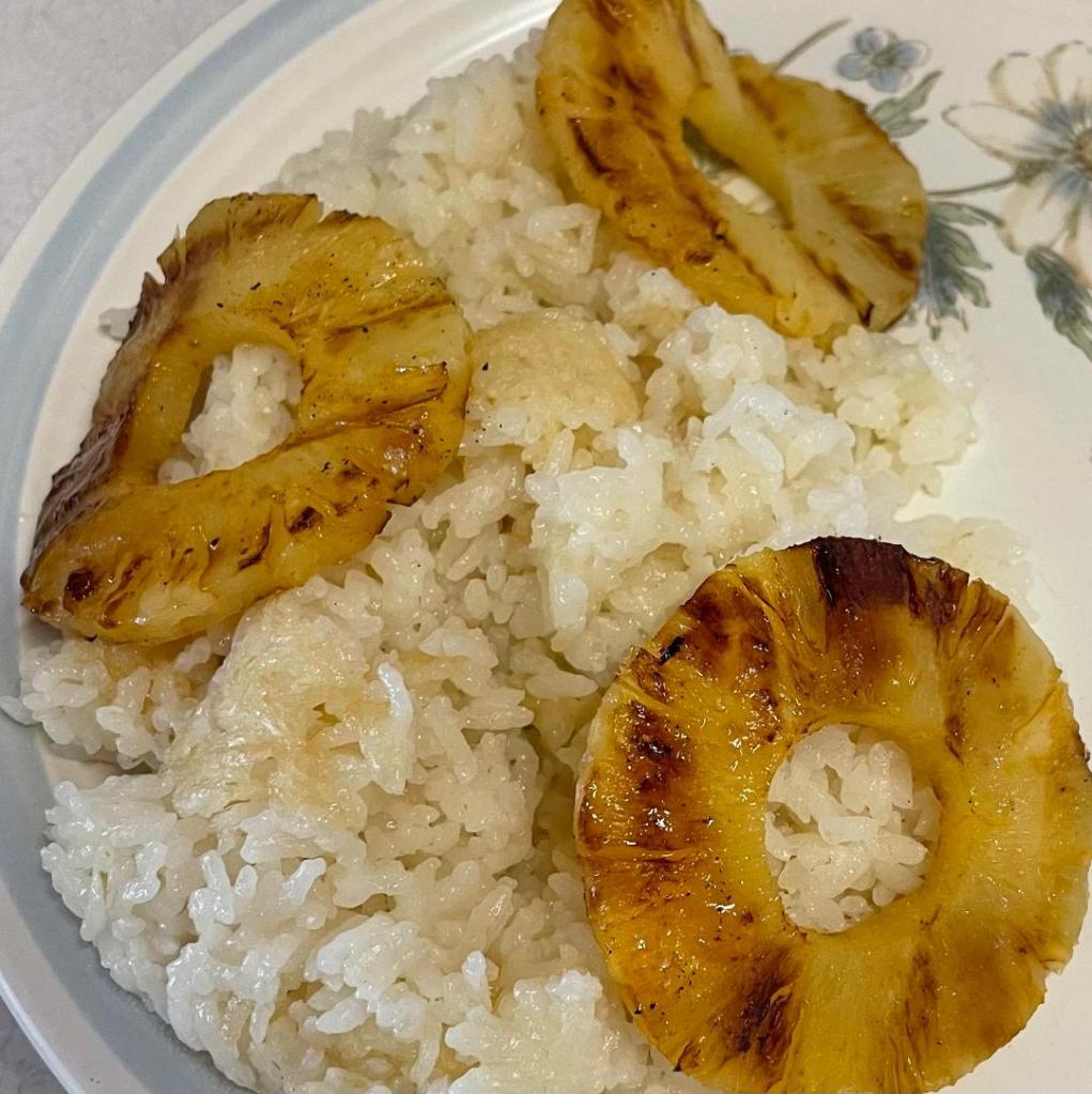 The coconut rice and grilled pineapple slices were great side dishes to the BBQ Chicken!!