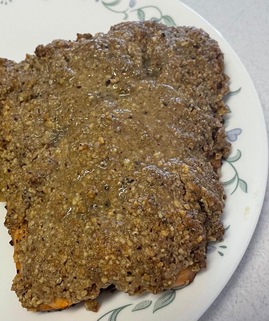 HAZELNUT-CRUSTED SALMON (https://www.diamondnuts.com/recipe/hazelnut-crusted-salmon/):