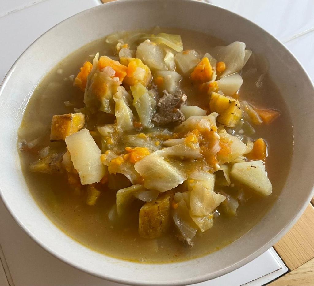 - Cut the tripe into bite-sized pieces and return it to the broth, along with the sauteed onions, peppers, tomatoes and the cassava or potatoes, sweet potatoes, plantains, and cabbage.