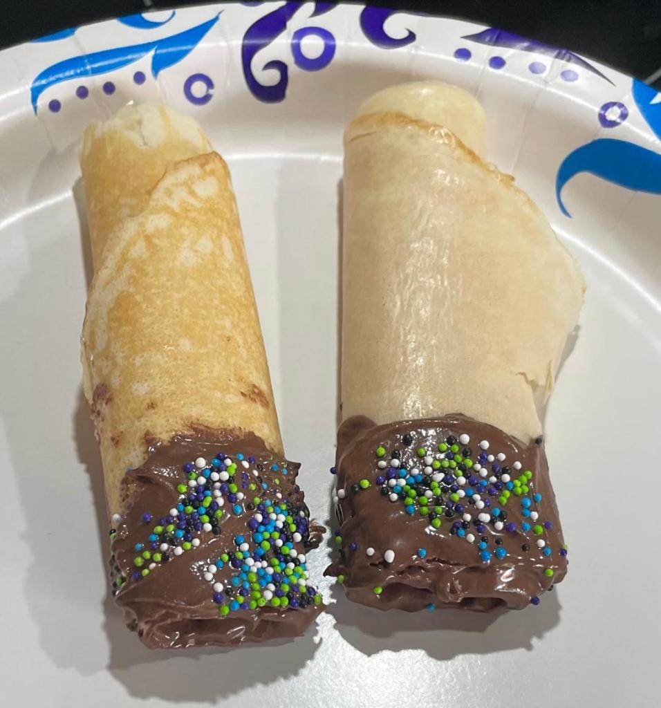 EASY CHOCOLATE CRȆPE POPS (https://stpierrebakery.com/recipes/crepes/easy-chocolate-crepe-pops/):