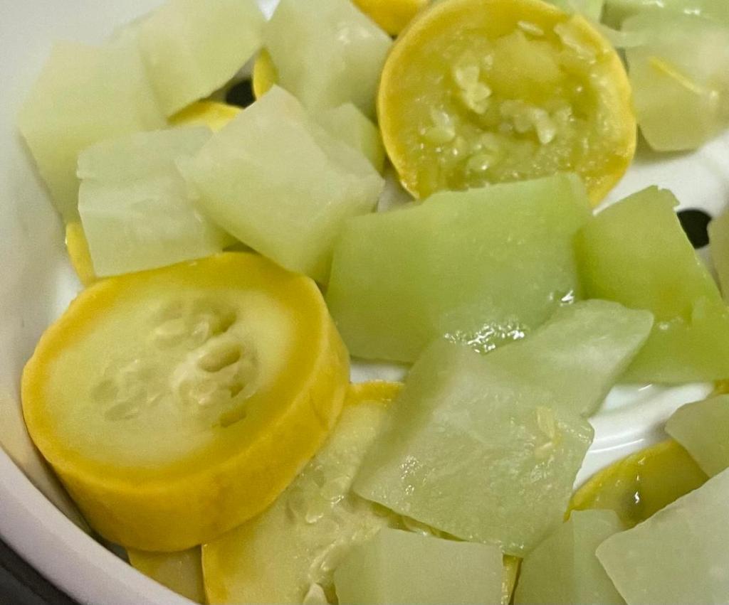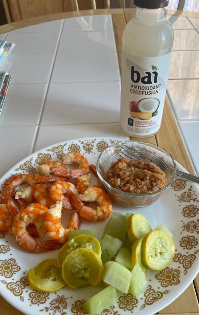 I used a yellow zucchini and a chayote. So much flavor and they complimented the prawns!!