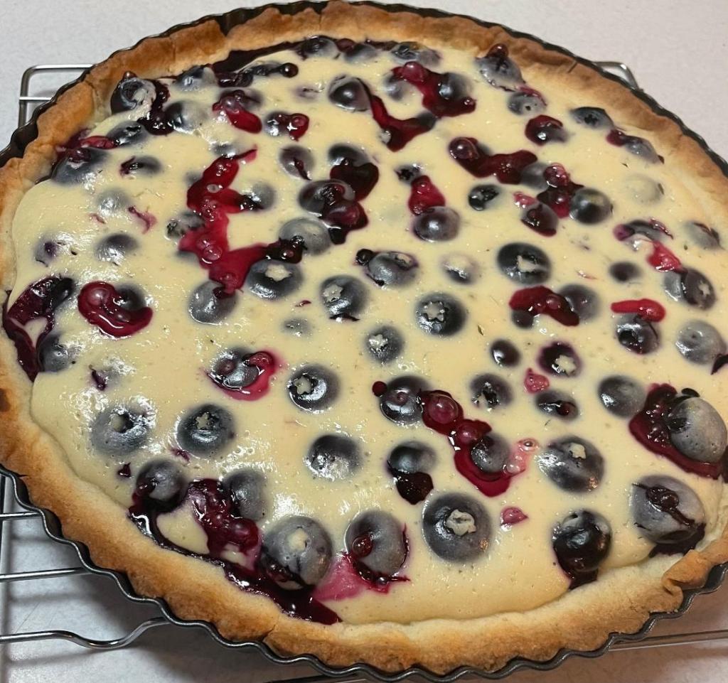 - Spread blueberries evenly over filling and pour the rest of the filling over the berries.