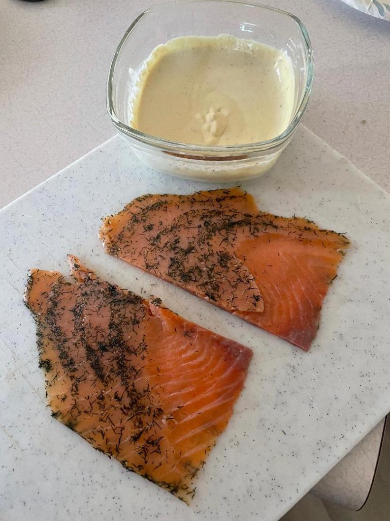 - Serve with toasted bread, mustard sauce, extra dill and lemon wedges.