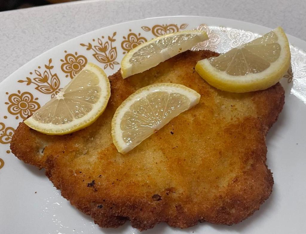 - Garnish with a lemon slice, if desired, and squeeze the juice all over the Schnitzel before eating.