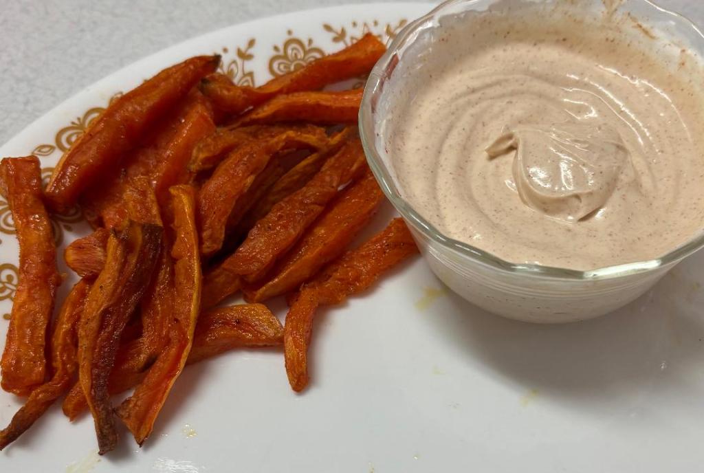 BAKED YAM FRIES WITH DIP (https://www.allrecipes.com/recipe/216247/baked-yam-fries-with-dip/):