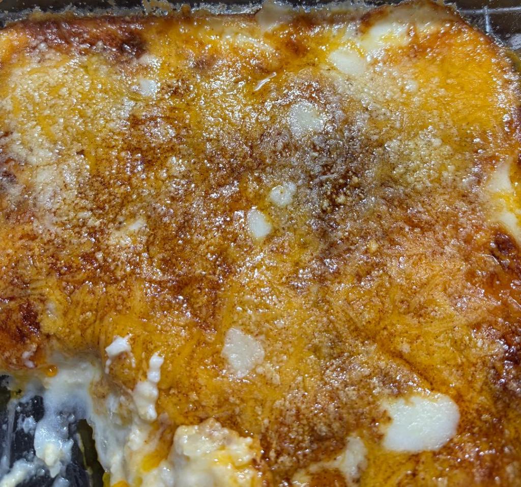 - Put under the broiler or in a hot oven to lightly brown on top.