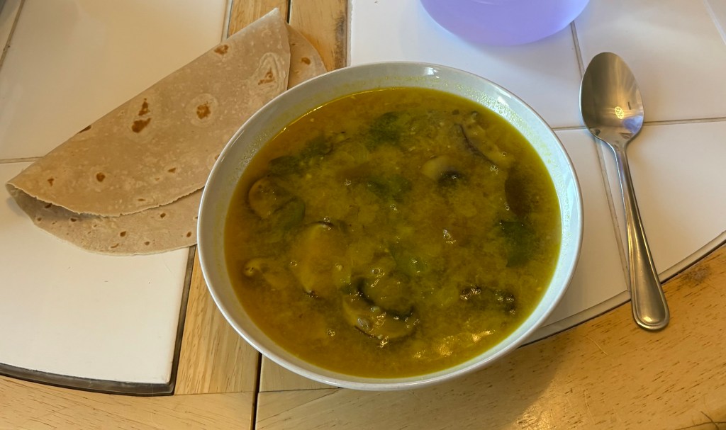 I used spinach, mushrooms and a few red lentils. Very good flavor!!