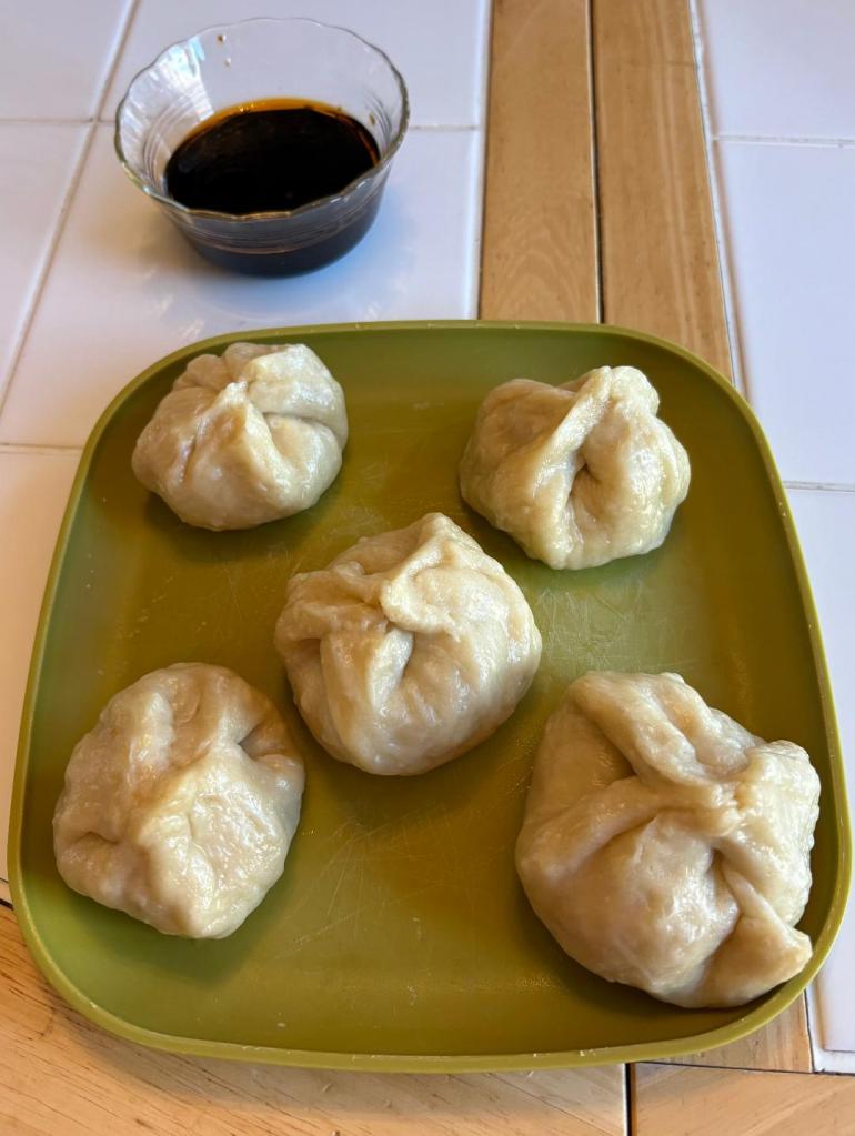 - Repeat with the remaining dough, forming 12-14 momos. Keep the dough and the finished momos covered while you work.